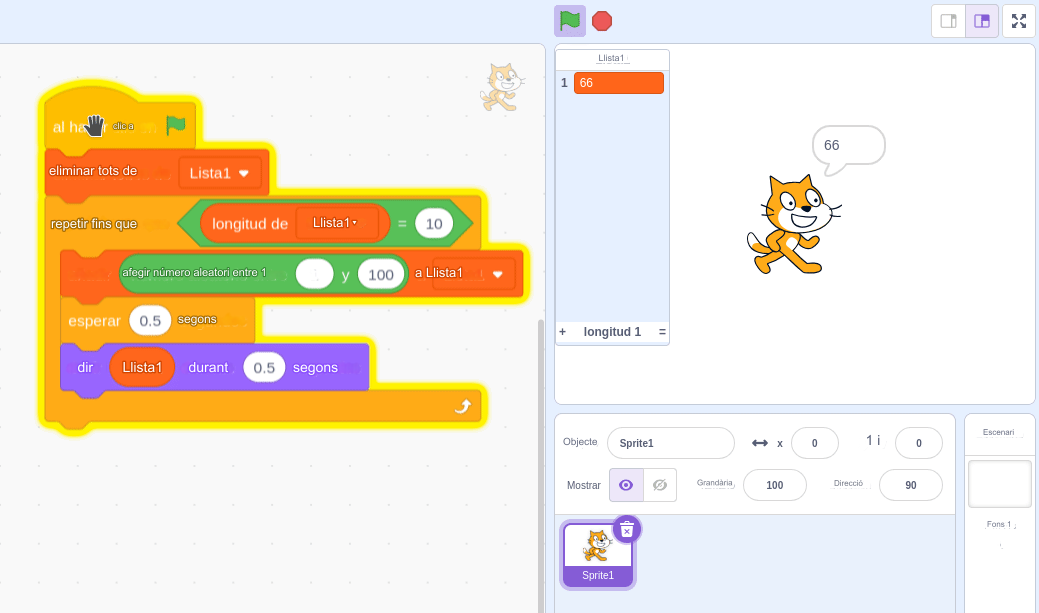 miquelnebot.es. Exemple de llistes de valors a Scratch 3.0 (CC BY-NC-SA 4.0)