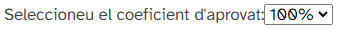 ❗ Una de les característiques més importants d'aquest iDevice si emprau com a LMS Moodle, és que permet la transferència de qualificacions al quadern de qualificacions quan exportam aquesta activitat en format de paquet SCORM (ho veurem a l'apartat 9 d'aquesta guia). Per aconseguir que sigui una activitat avaluable, haurem d'establir el coeficient d'aprovat fent clic al selector .