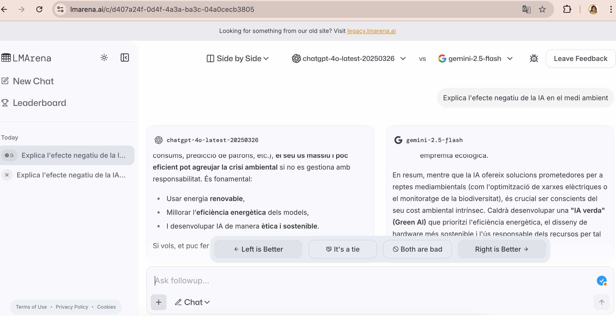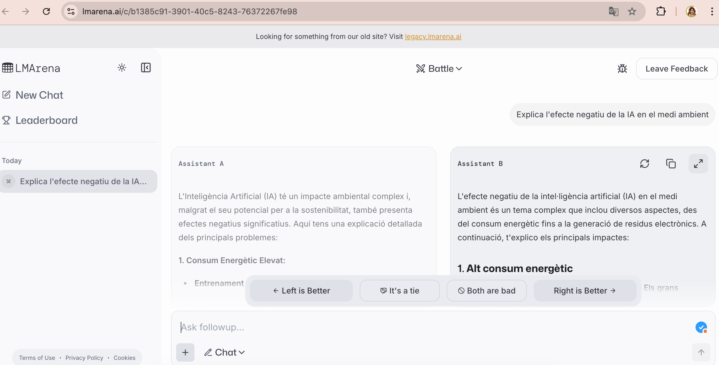 En la mateixa línia podeu trobar el projecte LMArena, que permet als usuaris comparar i avaluar els diferents xatbots.