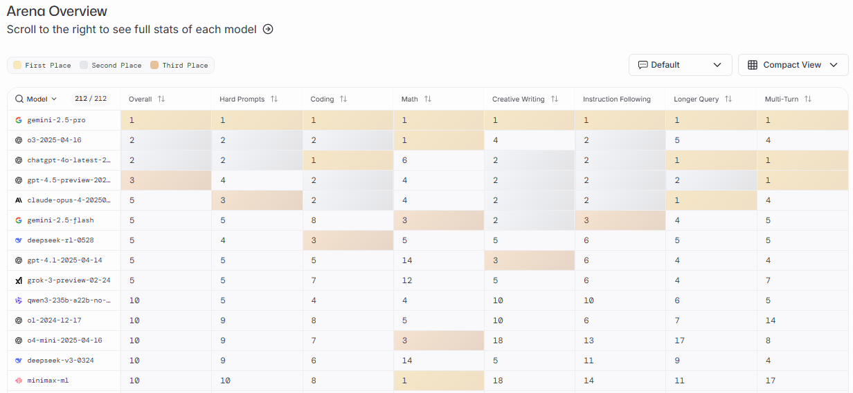 Si cliques a Leaderboard pots veure una classificació dels millors xatbots segons els usuaris, tenint en compte diferents aspectes: text, imatge, visió, etc.