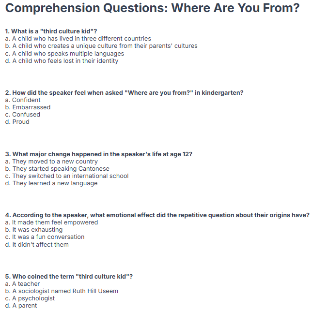 Les preguntes sobre un vídeo poden ser un recurs molt útil a l’hora de comprovar si l’alumnat ha entès el contingut que s’hi ha explicat, així com a l’hora d’avaluar la comprensió auditiva d’una llengua estrangera.