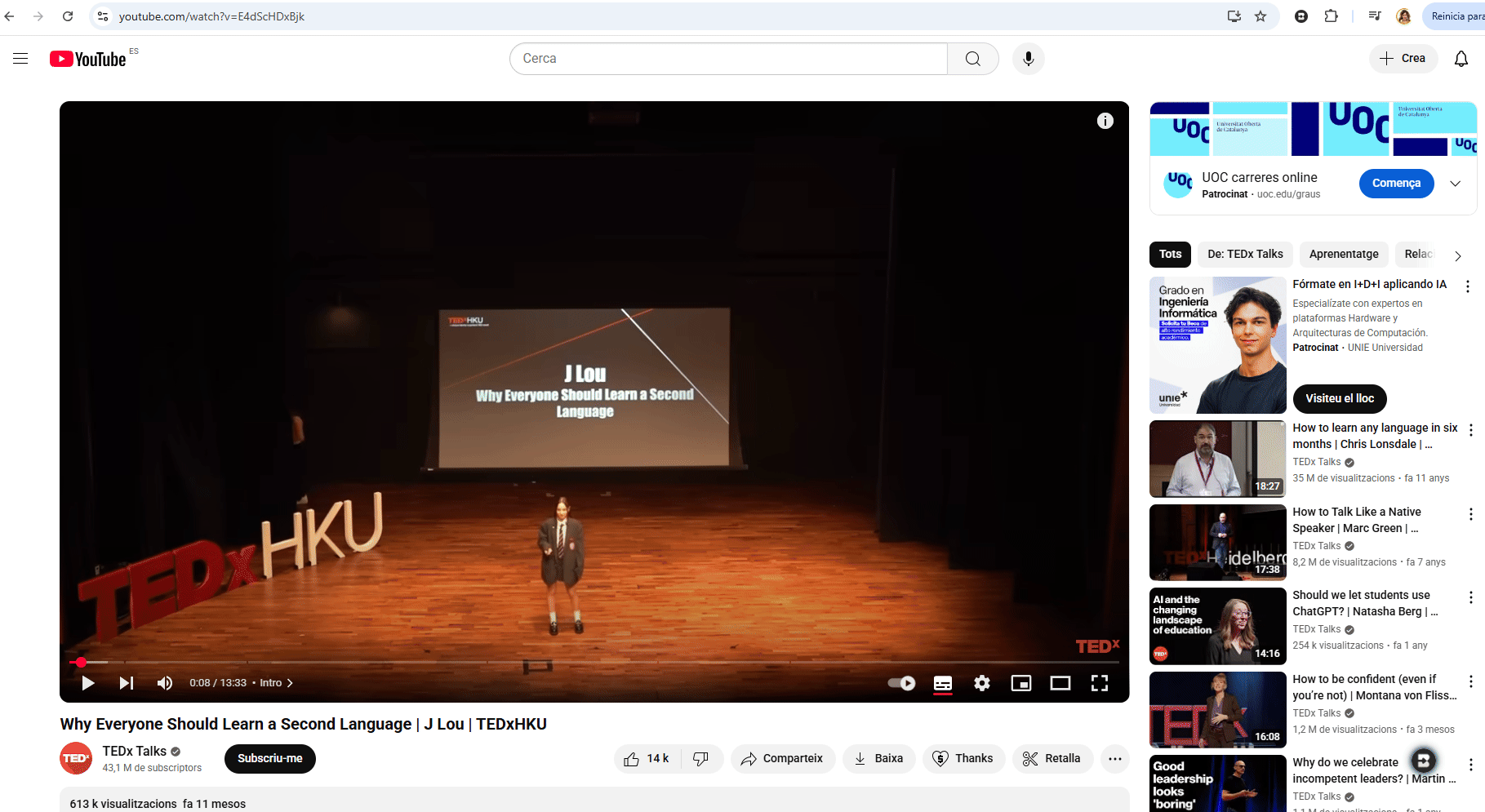 Actualment, els xatbots ja poden processar directament l’àudio i les imatges d’un vídeo, per tant, basta que hi posem l’URL del vídeo, ja no és necessari inserir-hi la transcripció.