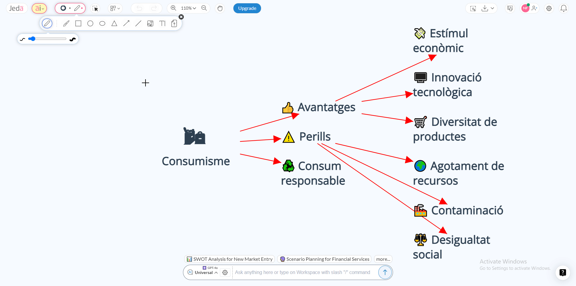 A la part inferior, podem veure com tenir més opcions per generar altres tipus de mapes conceptuals i gràfics relacionats amb el prompt que li hem donat:
