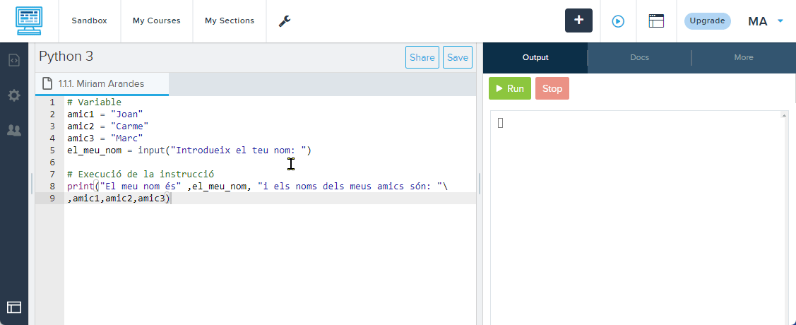- Si, en voltes de definir una variable, volem disposar de constants1, ho farem emprant les majúscules. Ex. NOM_COMPLET = "Lluc Martí Jaume".