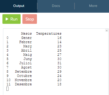 Exemple 1: En aquest primer exemple construirem un diccionari amb dades per realitzar una graella de temperatures mitjanes anuals d'una localitat del Mediterrani.