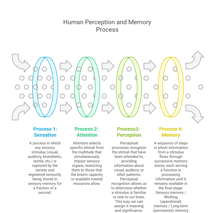 Understanding access to information is really important and requires considering how the brain processes stimuli, transforming them into meaningful and comprehensible information. This process is known as perception. But what are perceptual processes? To better understand them, it is necessary to first analyze how different basic cognitive processes unfold. This will provide a foundation for better understanding the role of perceptual processes in learning: